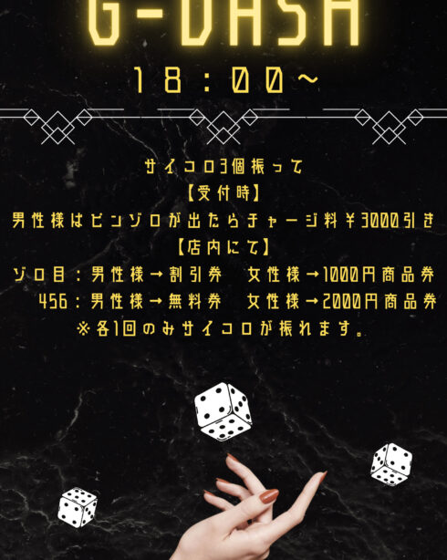 男性様はピンゾロが出たらチャージ料¥1000引き