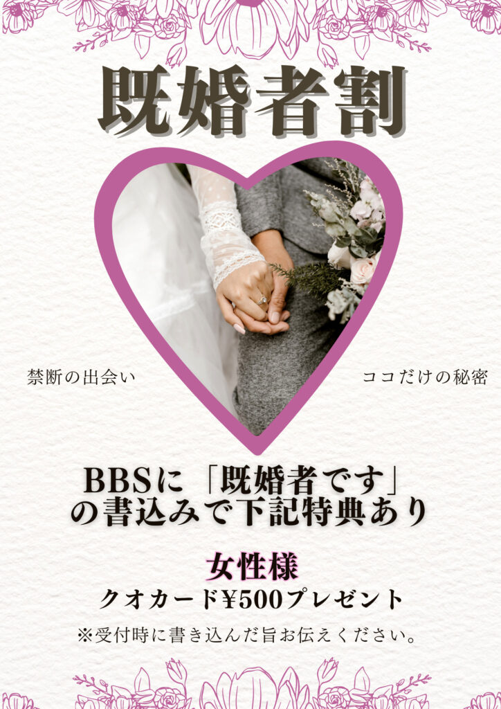 BBSに『 既婚者です 』の書込みで下記特典あります