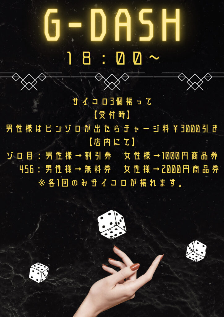 男性様はピンゾロが出たらチャージ料¥1000引き
