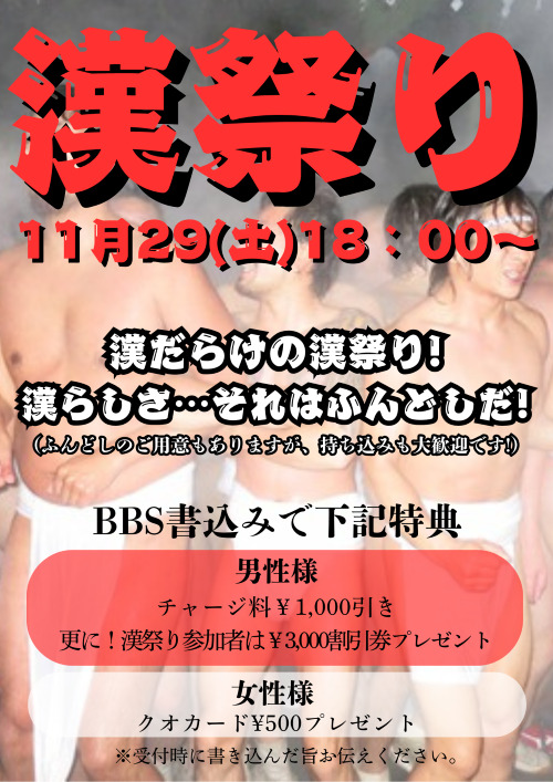 *ふんどしのご用意もございますが持ち込みも大歓迎です。