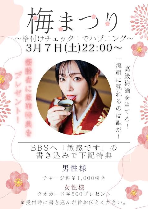 【 BBS書込みで『 敏感です 』の書き込みで下記特典 】
