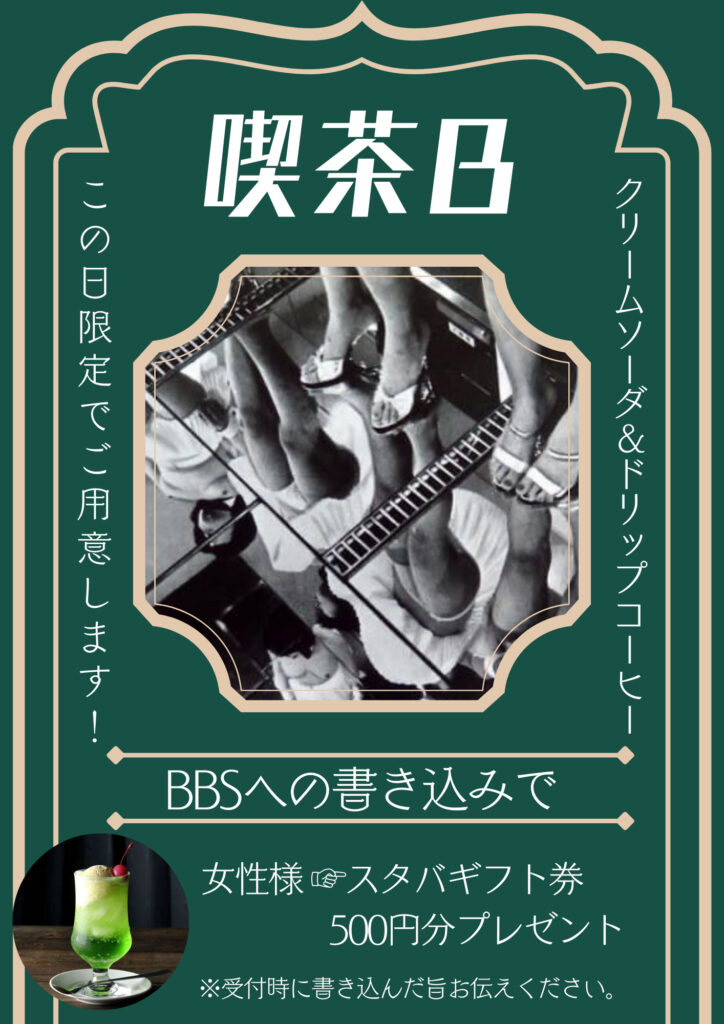 本日お昼のイベントは大人の魅力満載の【喫茶B】ダンディーなスタッフがアナタをおもてなし致します。