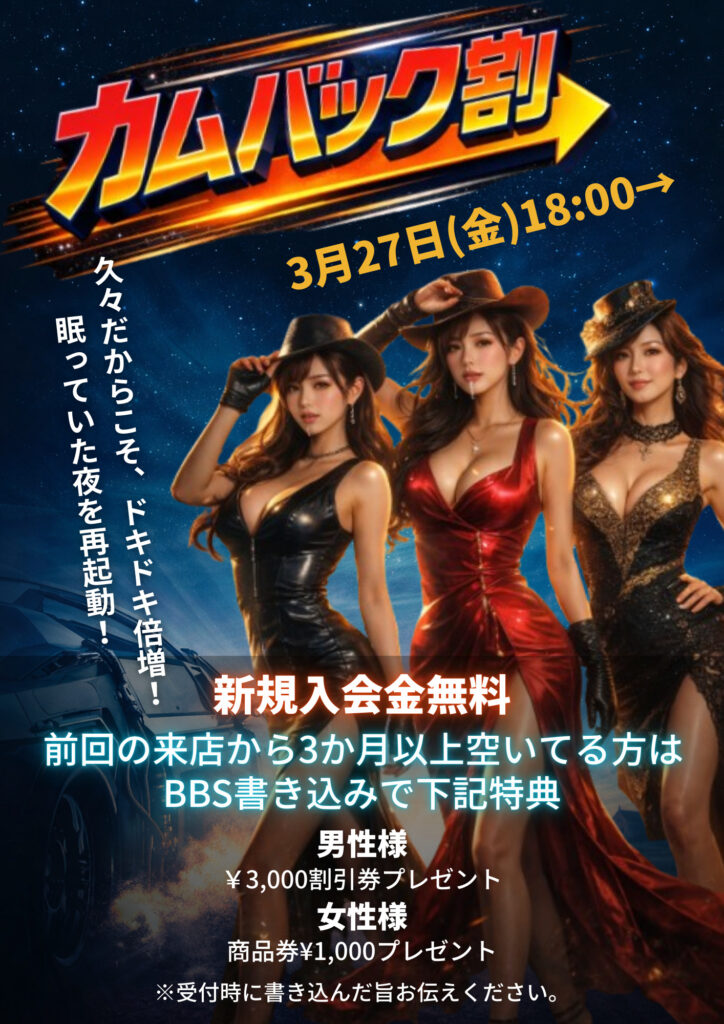 【 前回の来店から3ヶ月以上空いている方はBBS書込みで下記特典 】